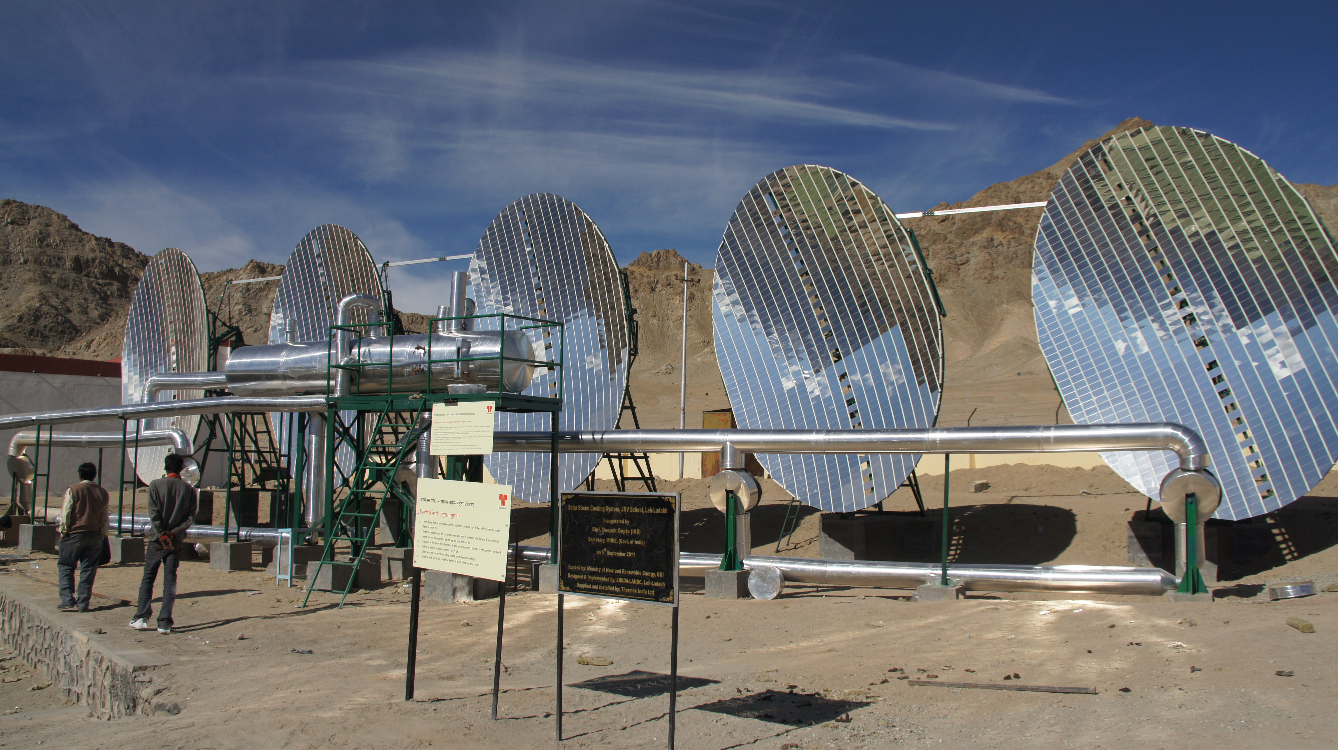 The Scheffler Dish, also known as the Scheffler Reflector, is a solar concentrator device with a parabolic-shaped reflector made of highly reflective materials such as polished steel or aluminum. This reflector concentrates sunlight onto a focal point where a heat-absorbing device is placed. The Scheffler Dish is mounted on a dual-axis sun-tracking system to maximize efficiency by always aligning with the sun's position. This concentration of sunlight generates intense heat, making it suitable for applications like solar cooking, steam generation, and other thermal processes. Its advantages include high efficiency, reliability, low operating costs, and reduced emissions. Applications of the Scheffler Dish include solar cooking, steam generation, water heating, and industrial processes such as drying and process heat. It is a clean and sustainable alternative to conventional energy sources, particularly in regions with ample sunlight.