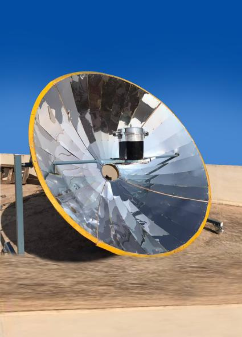 A parabolic cooker is a solar cooking device that uses a parabolic reflector to focus sunlight onto a central point where a cooking vessel or heat-absorbing component is placed. The reflector is typically made of reflective materials, and the cooker may include a sun-tracking system to follow the sun's path throughout the day. This concentration of sunlight creates intense heat, making it suitable for cooking food, heating water, pasteurization, sterilization, and various industrial processes. Parabolic cookers are environmentally friendly, energy-efficient, and cost-effective, relying on renewable solar energy. They offer a clean and smoke-free method of cooking, making them especially valuable in regions with ample sunlight.